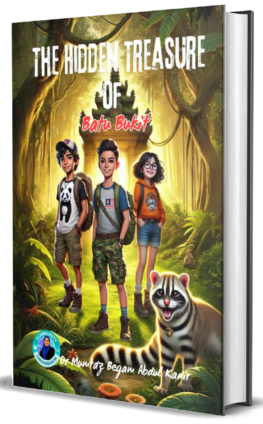 In "The Hidden Treasure of Batu Bukit," Aiman, Mei Ling, and Ravi, along with their playful civet companion, Comot, embark on a thrilling journey through the lush forests of Malaysia. Guided by an old